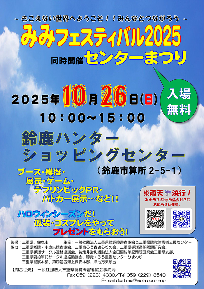 【終了】10/26(日)みみフェスティバル2025