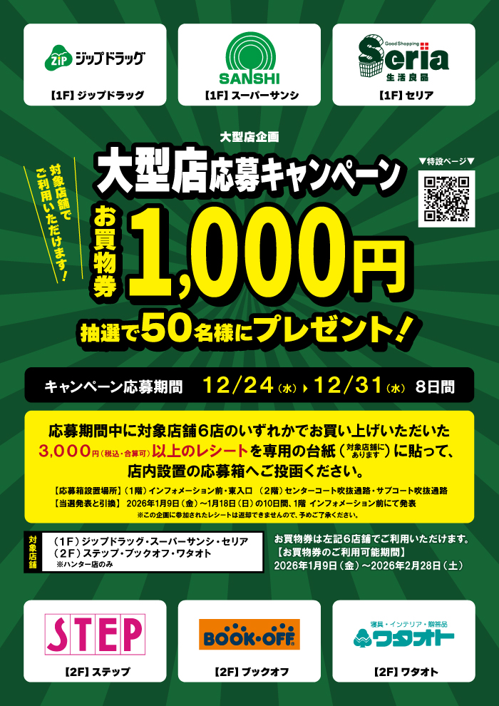 ※お買物券は下記6店舗(ハンター店のみ)でご利用いただけます。