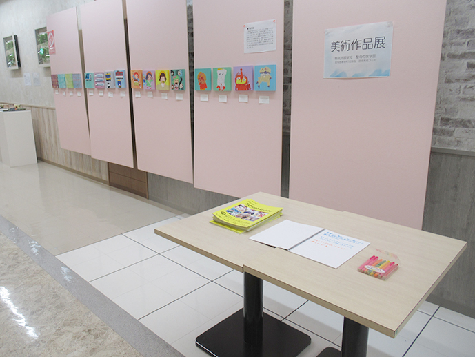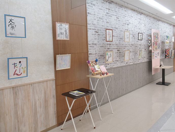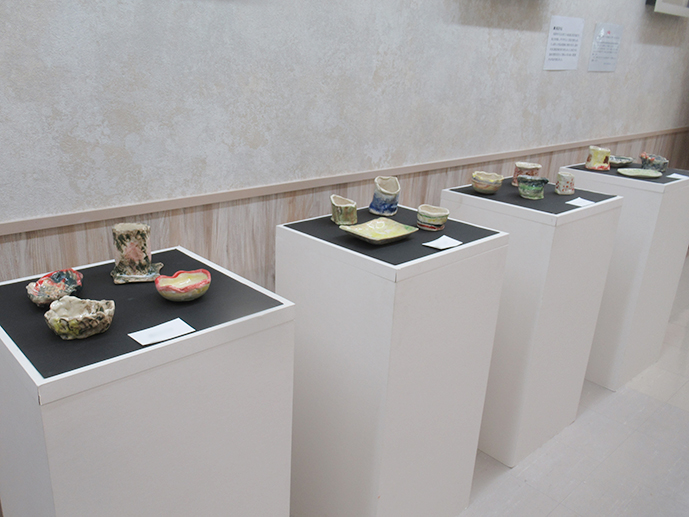 生徒・利用者作の平面や陶芸、書道などの作品を展示します。