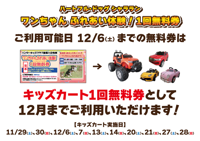 ※「ハートフル・ドッグ シャララン ワンちゃんふれあい体験!1回無料券」について