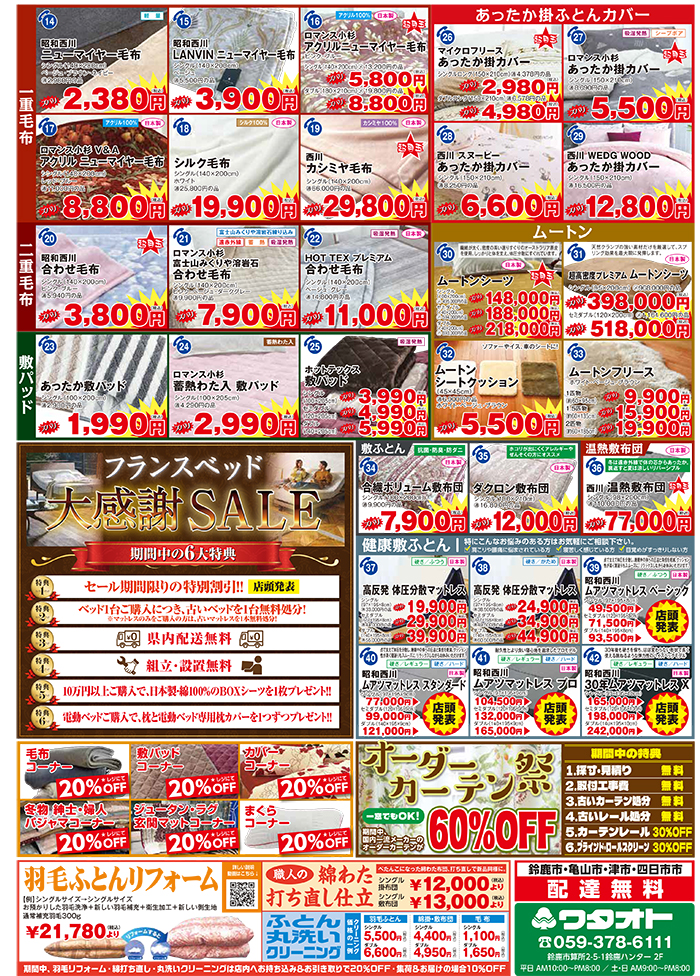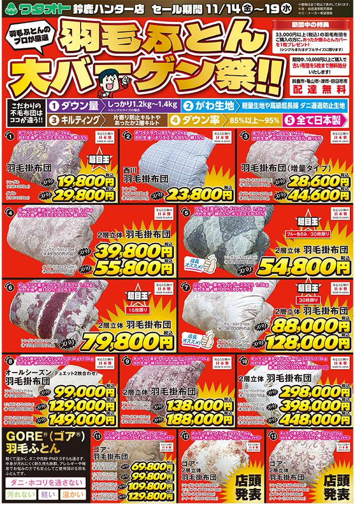 羽毛ふとん大バーゲン祭開催!